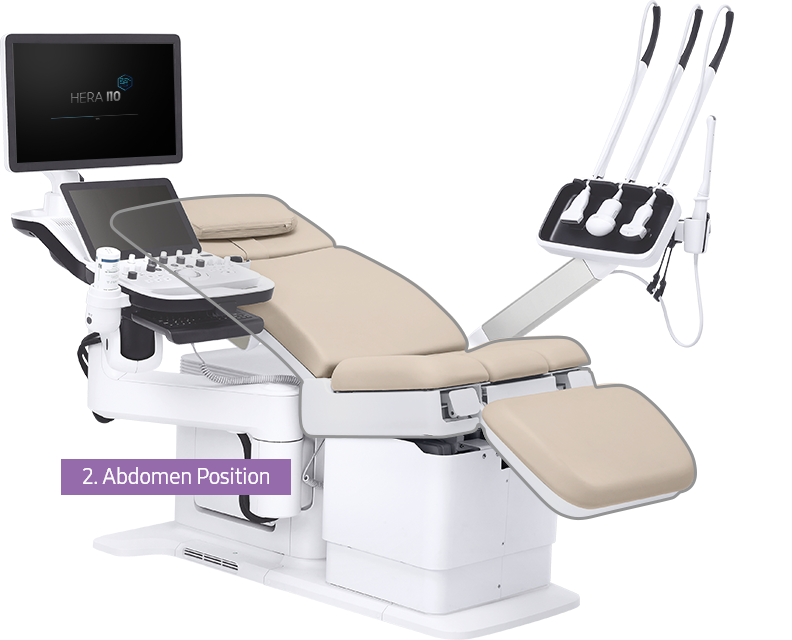 Componenta electronică este amplasată în spătarul scaunului într-un mod neconvențional, pentru a oferi spațiu amplu pentru picioarele ecografului. Cablul traductorului ajută la reducerea tensiunii musculare prin limitarea forței utilizate pentru a trage cablul și a sarcinii plasate pe încheietura mâinii. Cablul vine dintr-o poziție mai înaltă decât poziția utilizată în mod convențional care este în partea de jos, făcând traductorul mai ușor.